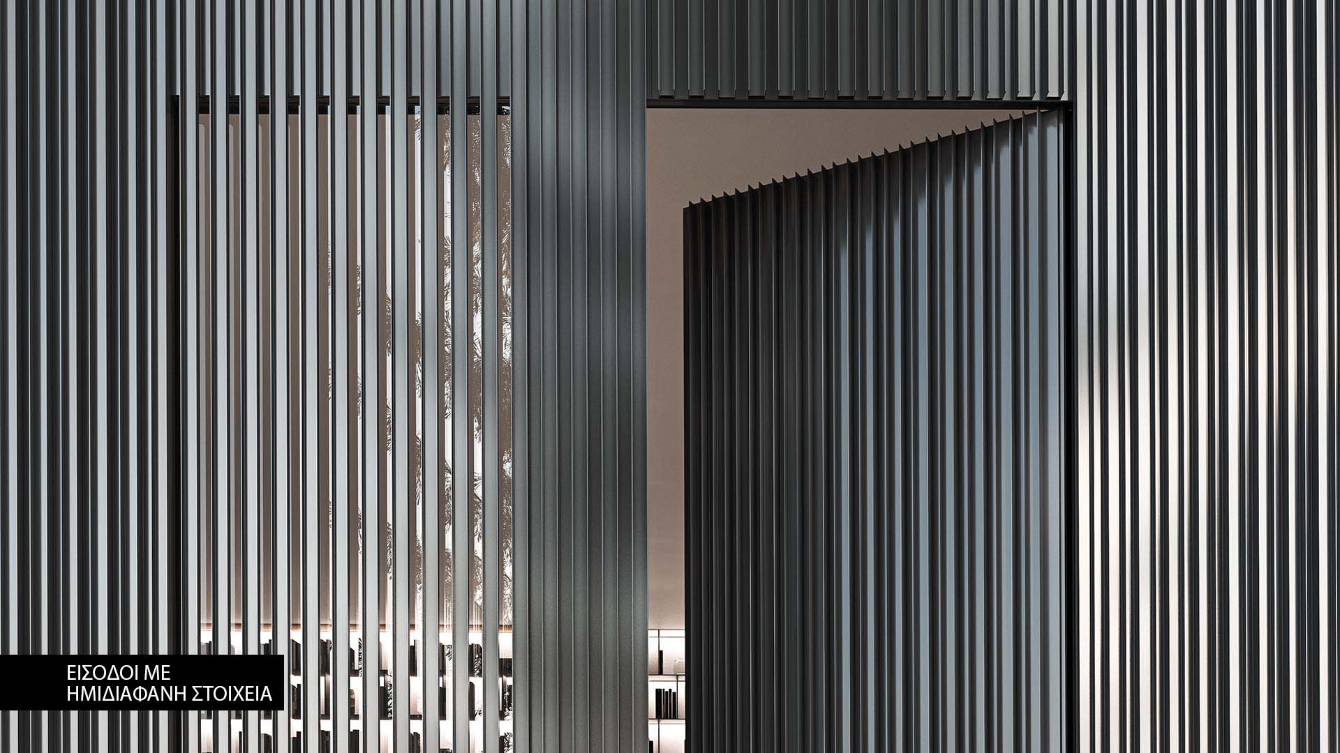 Οι υφές είναι τραχύτερες αφού το βάθος των κάθετων προφίλ είναι 35mm και η τελική εντύπωση πιο τολμηρή και εξωστρεφής, χάρη στα παιχνίδια της σκιάς και του φωτός.