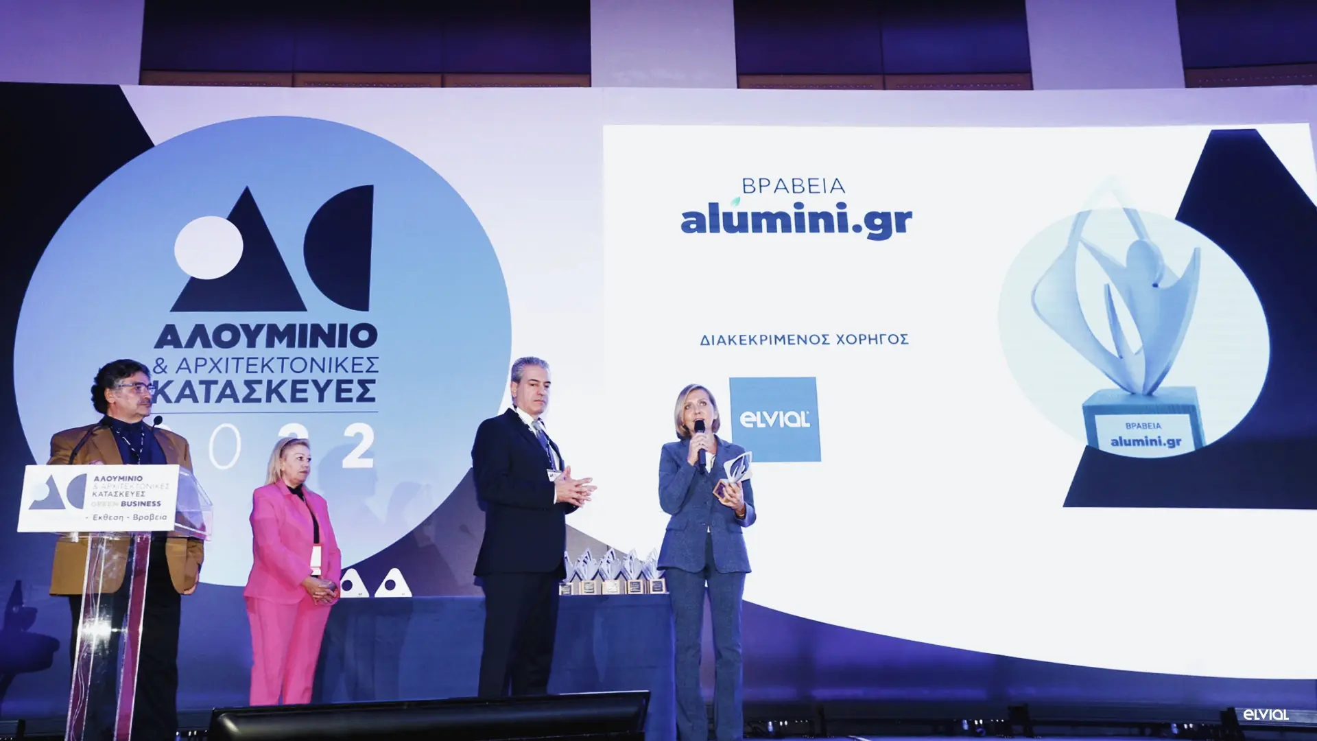 Παράλληλα πραγματοποιήθηκε η βράβευση «ΑΡΧΙΤΕΚΤΟΝΙΚΩΝ ΕΡΓΩΝ & ΚΑΤΑΣΚΕΥΩΝ ΑΛΟΥΜΙΝΙΟΥ» με την αποκλειστική χορηγία της ELVIAL. Στη 2η Έκθεση & Βραβεία συμμετείχαν 50 έργα, από ελληνικές κατασκευαστικές επιχειρήσεις αλουμινίου & αρχιτεκτονικά γραφεία, με εφαρμογή συστημάτων αλουμινίου στο κέλυφος, σε πόρτες, παράθυρα και ειδικές κατασκευές του κτηρίου.