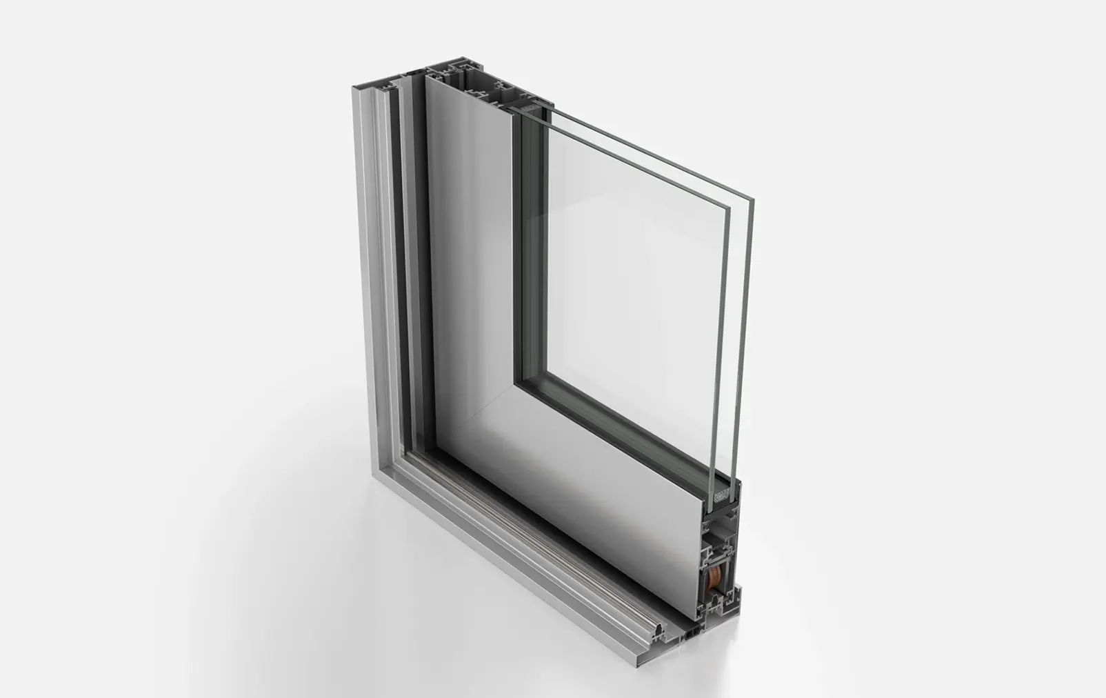 Insulating bars with 25% glass reinforcement of 20mm in tracks and 28mm in sashes are applied, offering thermal insulation and rigidity. -