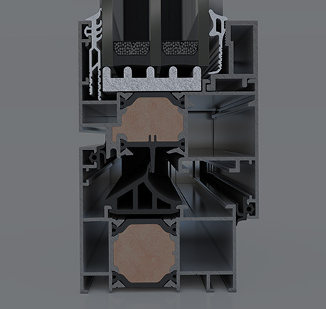 Wide insulating bars with 25% glass fibre reinforcement of 24mm, are applied to all system profiles, offering high thermal insulation levels and extra sense of amenity. -
