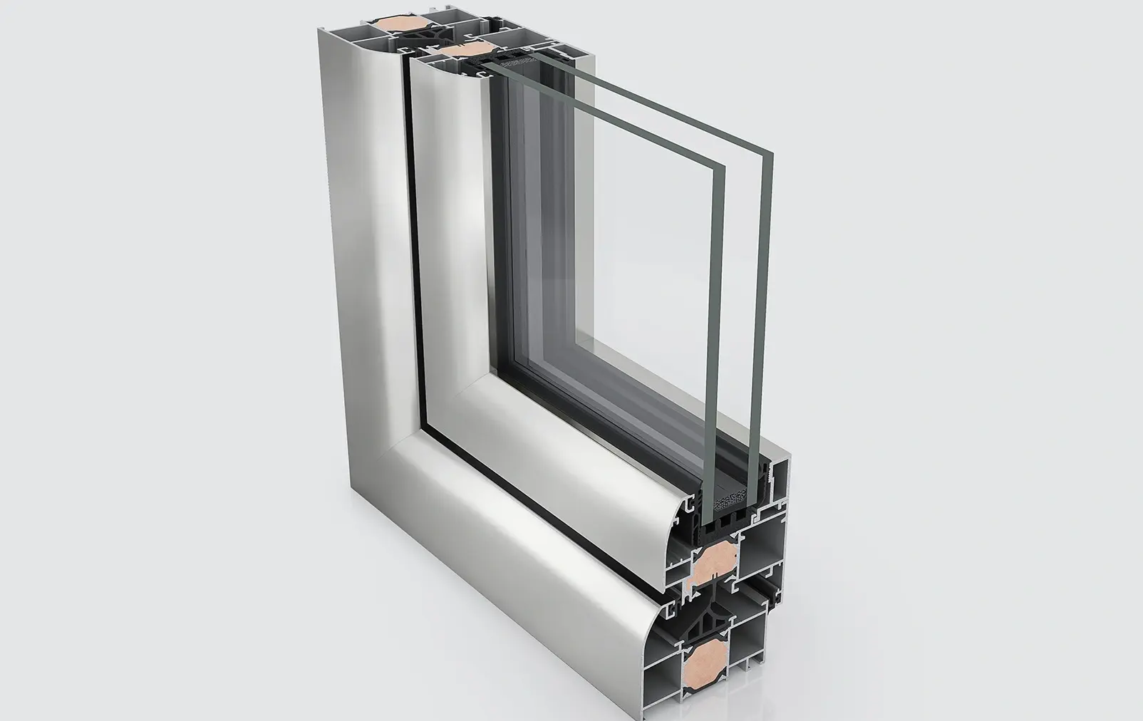 Glazing gaskets with fins minimize the heat transfer under the glazing zone. -