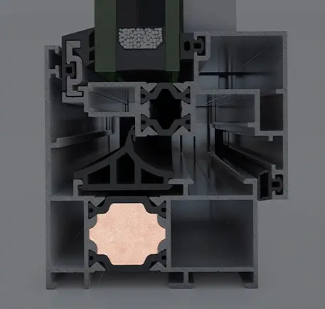 Wide insulating bars with 25% glass fibre reinforcement of 22mm, are applied to all system profiles, offering high thermal insulation levels and extra sense of amenity.